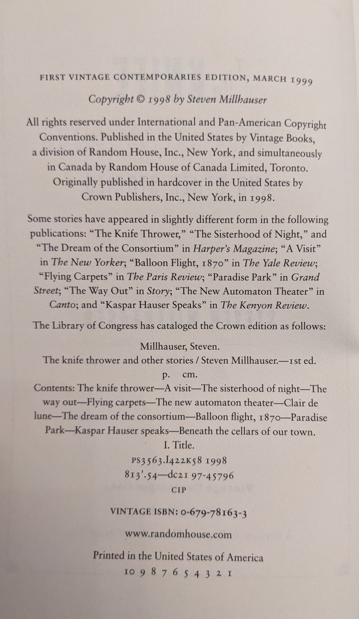 First Vintage Contemporaries Edition March 1999