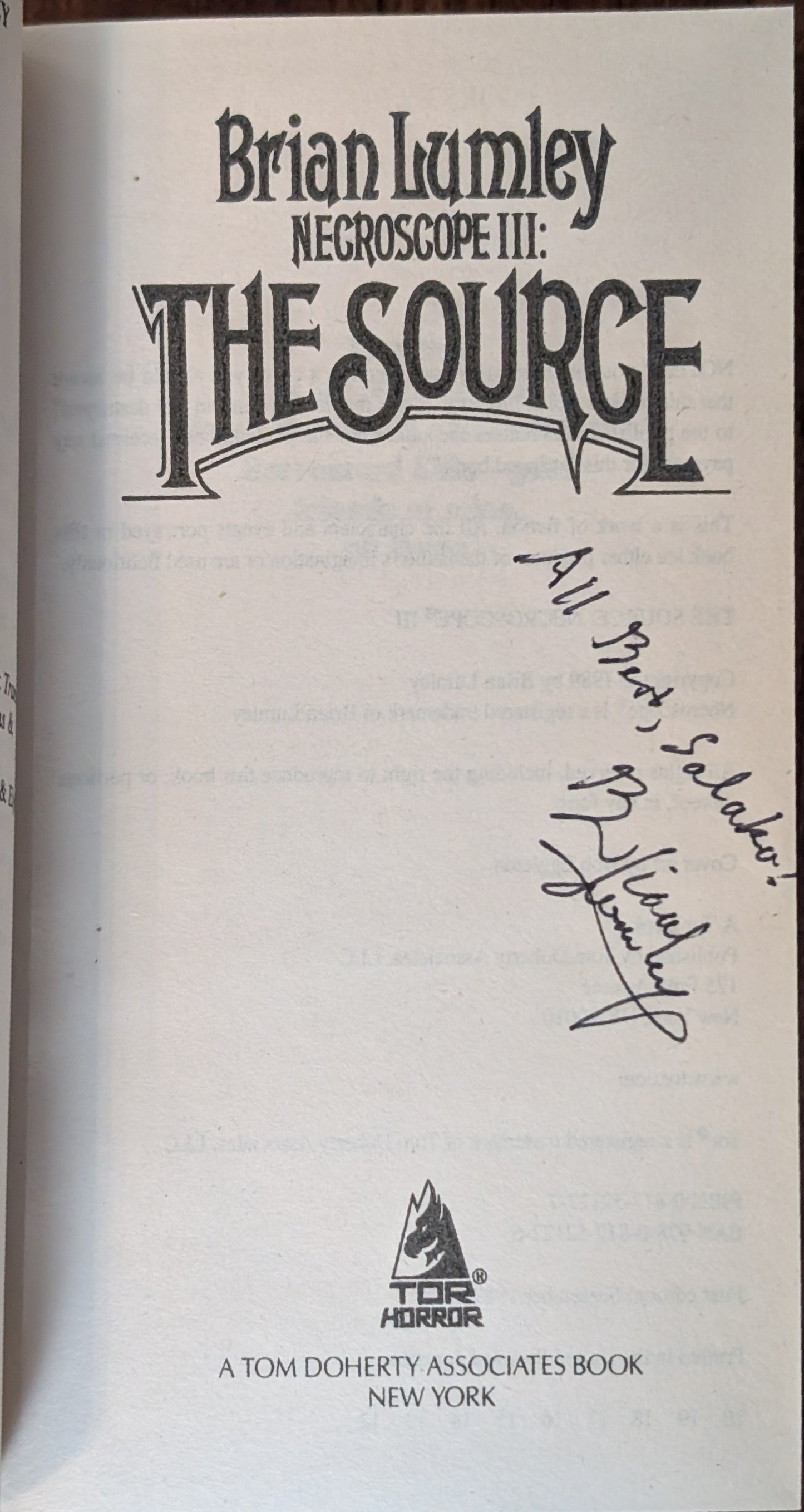 Necroscope III: The Source by Brian Lumley (Signed)