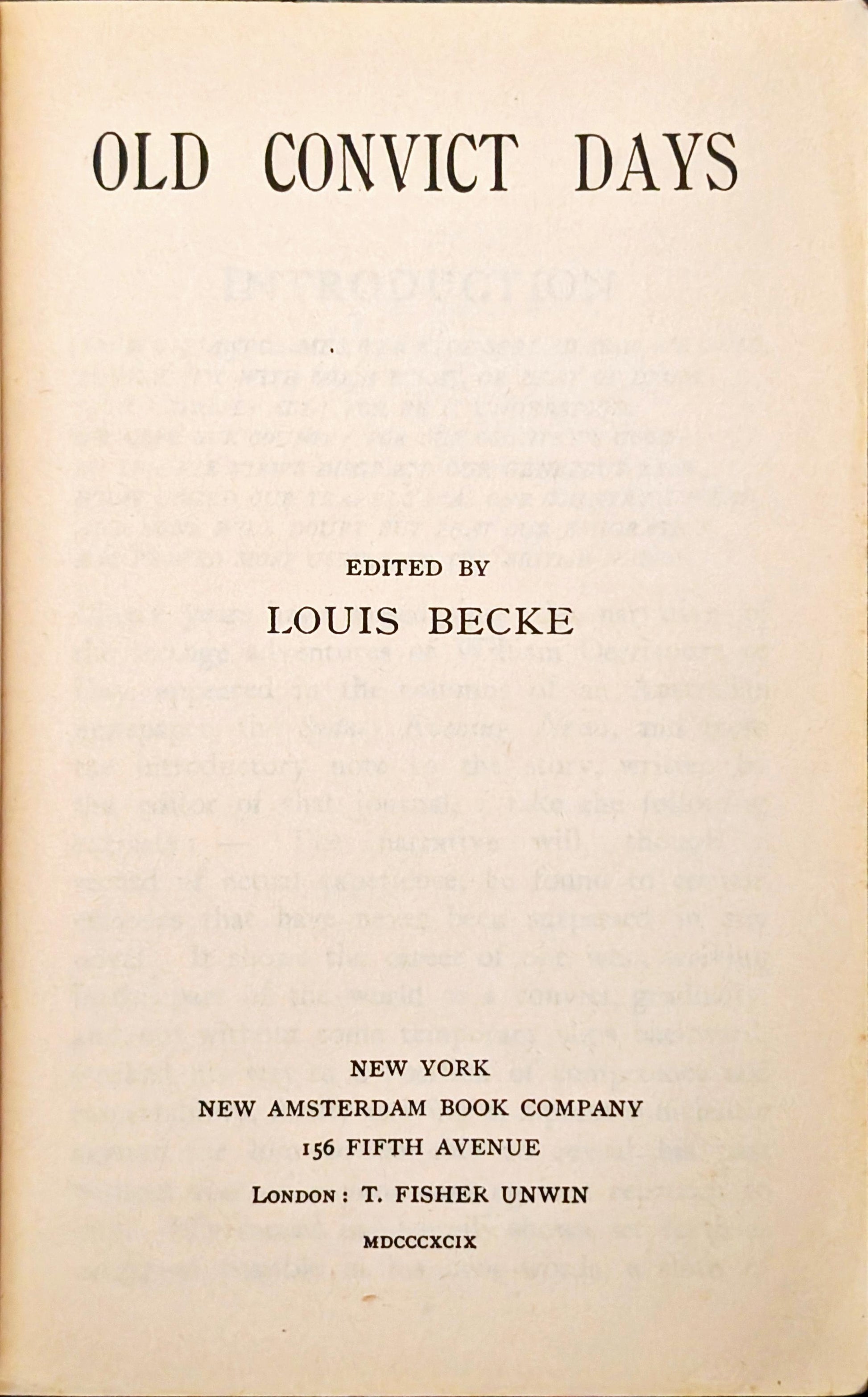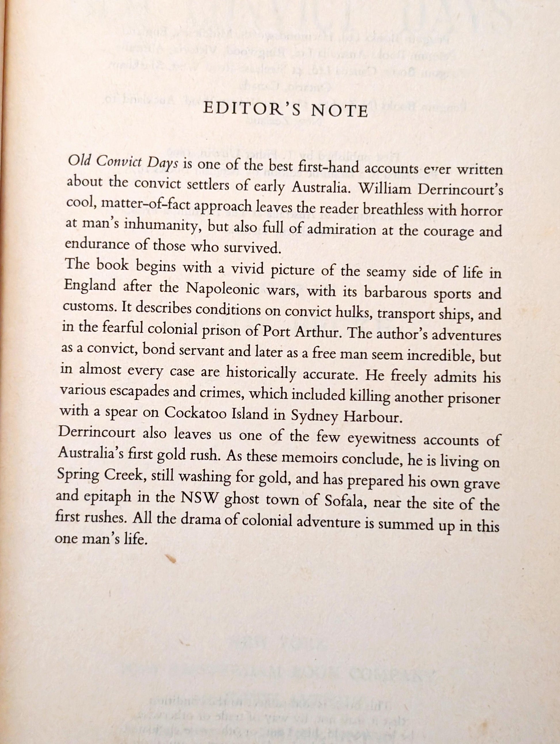 Old Convict Days by William Derrincourt edited by Louis Becke