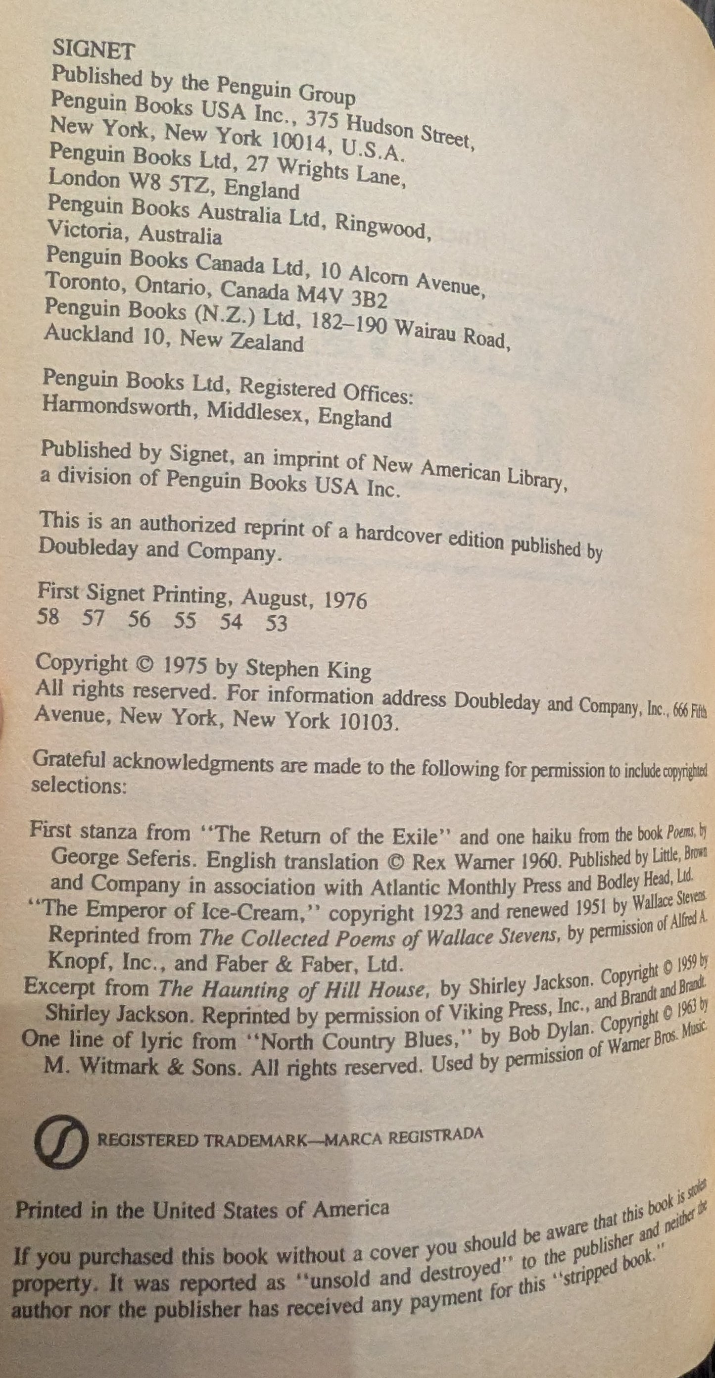 First Signet Printing, 1976