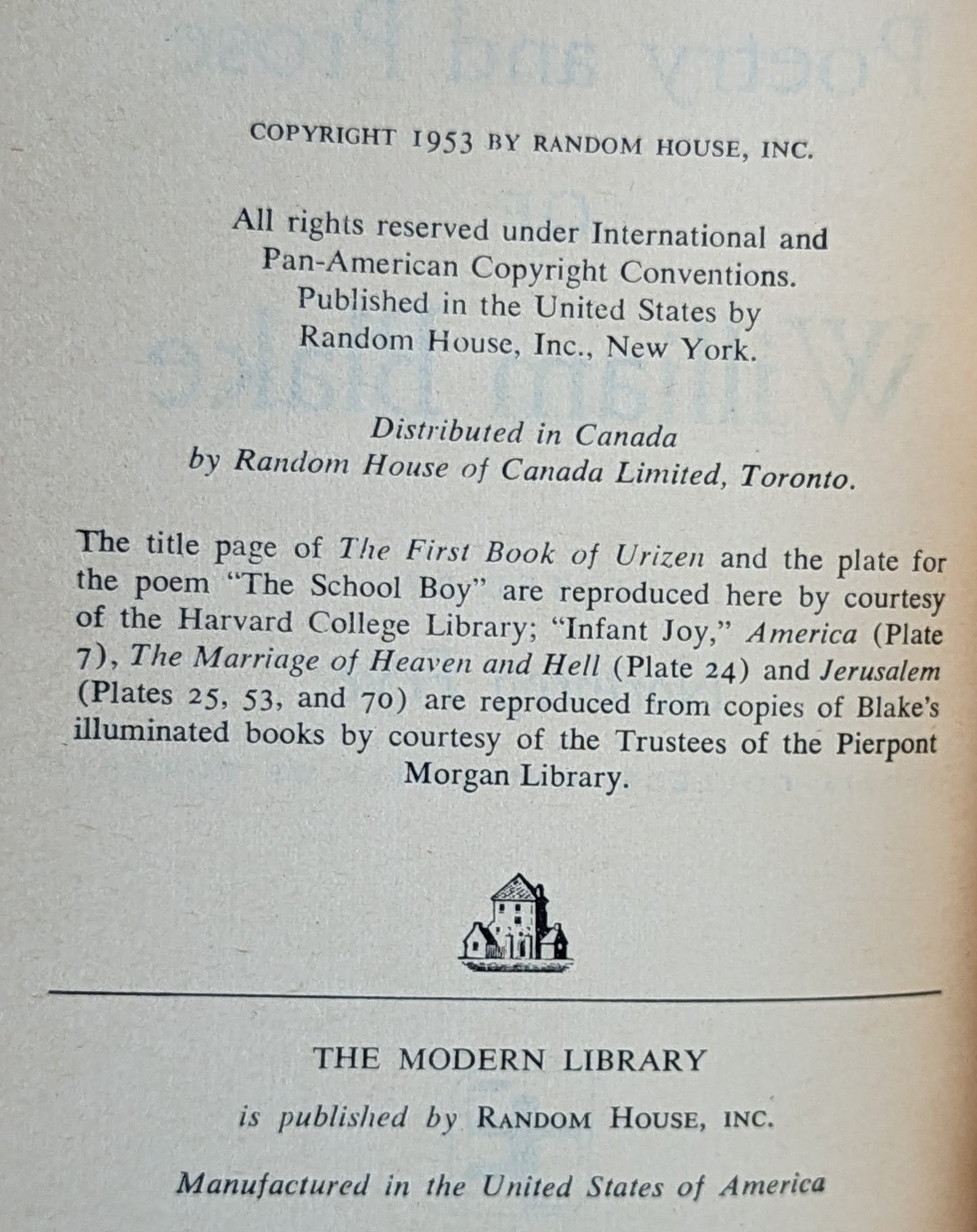 Selected Poetry and Prose of Blake, ed. Northrop Frye