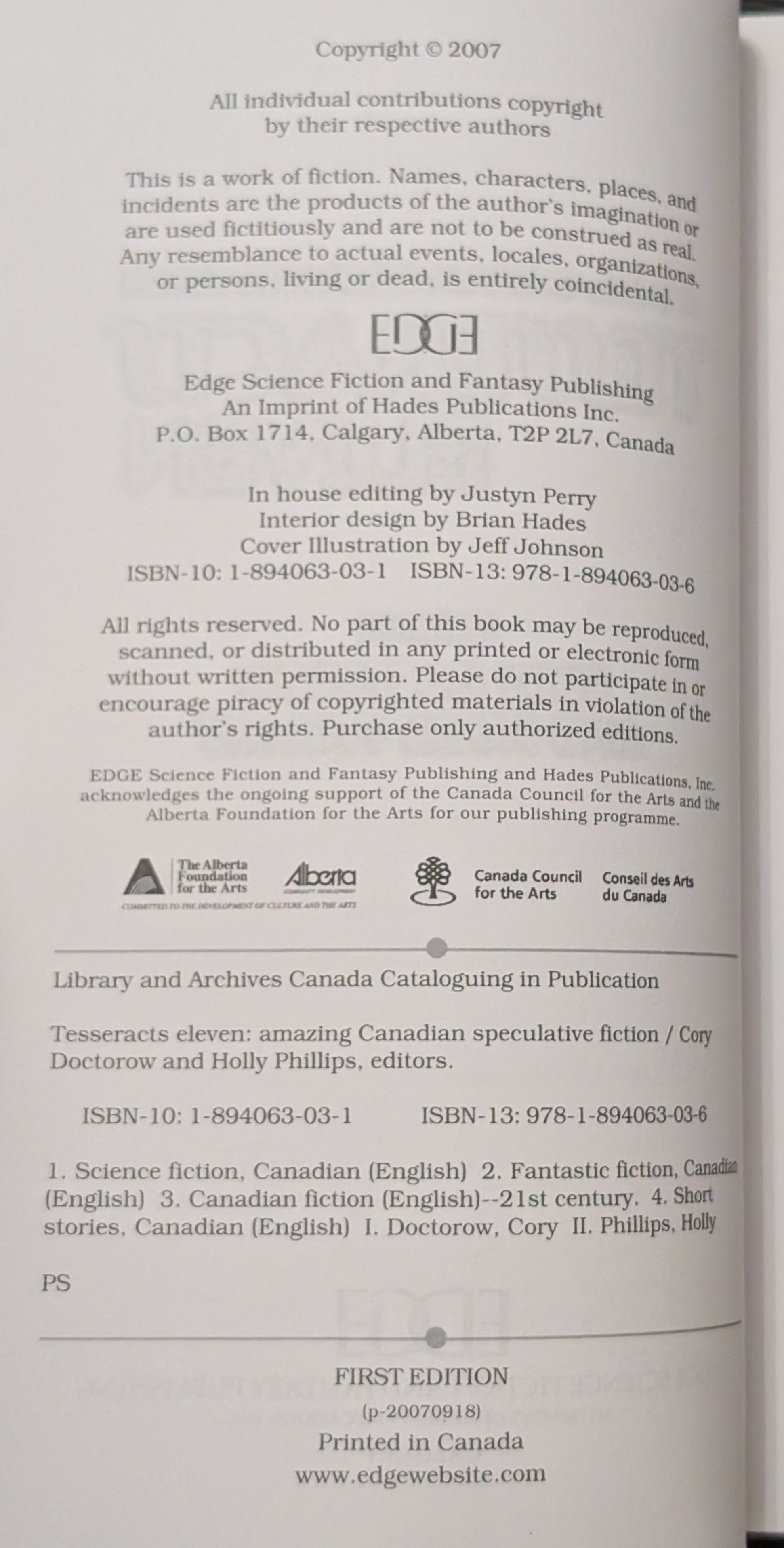 Edge Science Fiction and Fantasy Publishing, First Edition, 2007