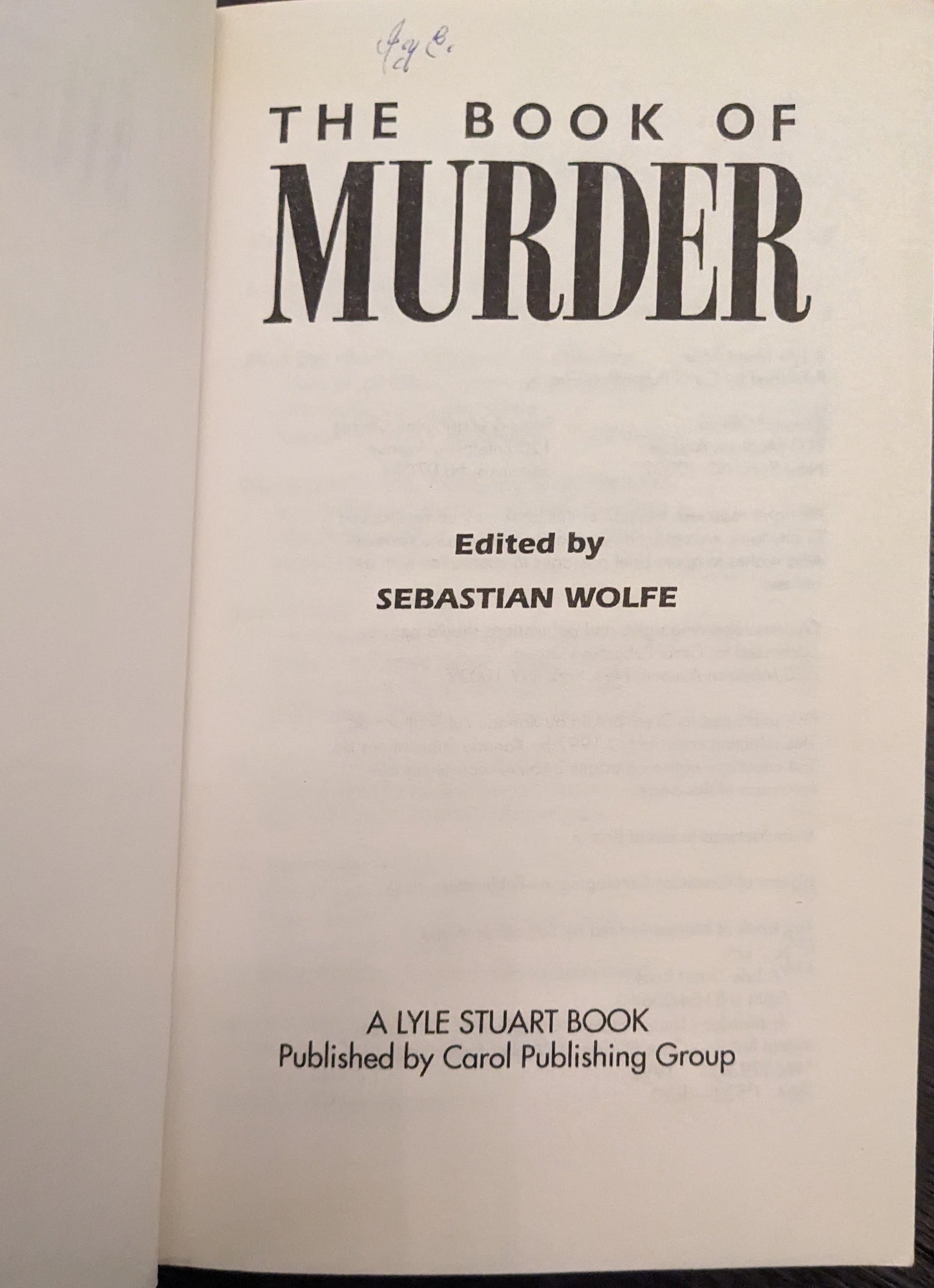 The Book of Murder Ed. Sebastian Wolfe