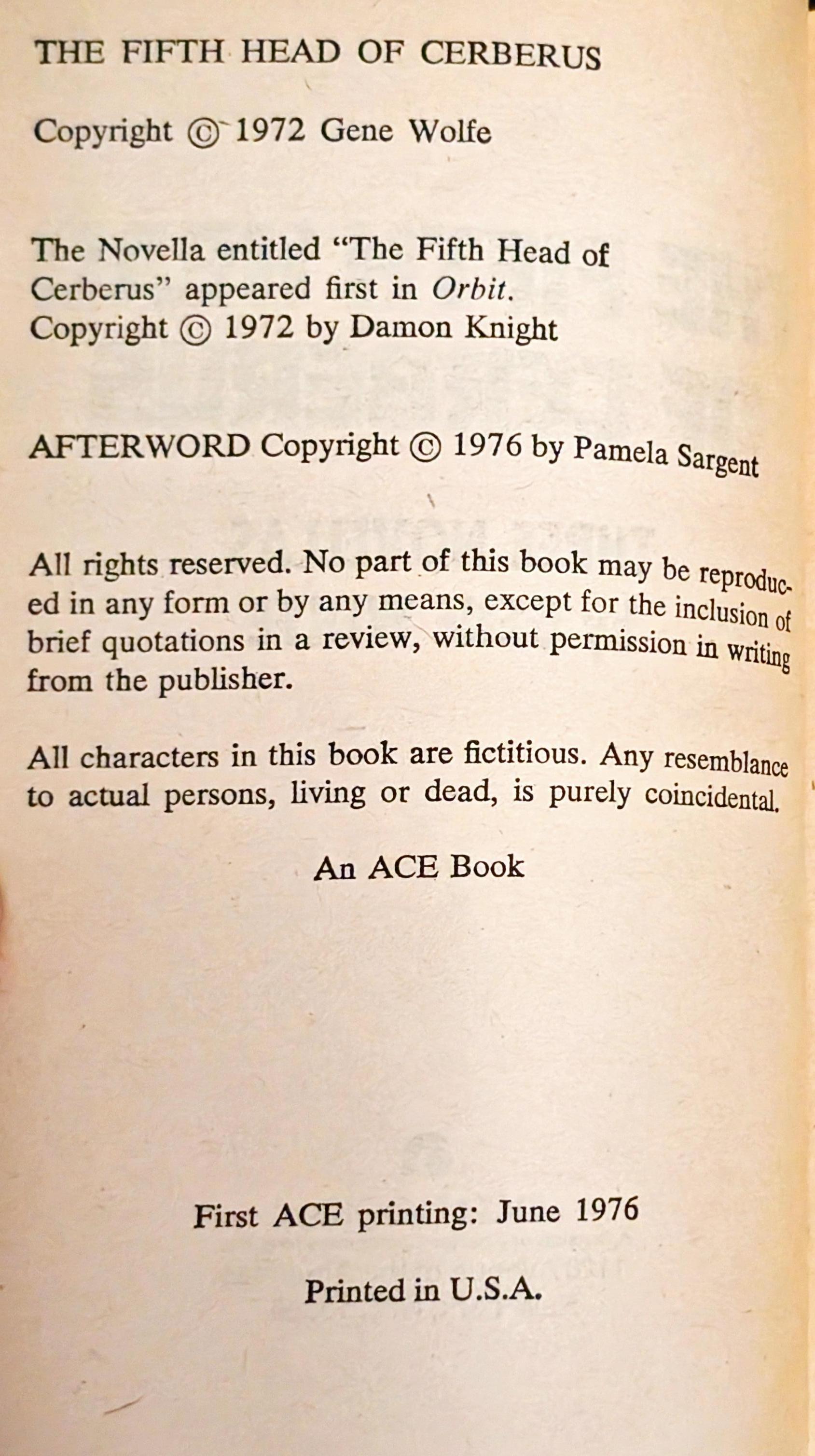 The Fifth Head of Cerberus: Three Novels by Gene Wolfe
