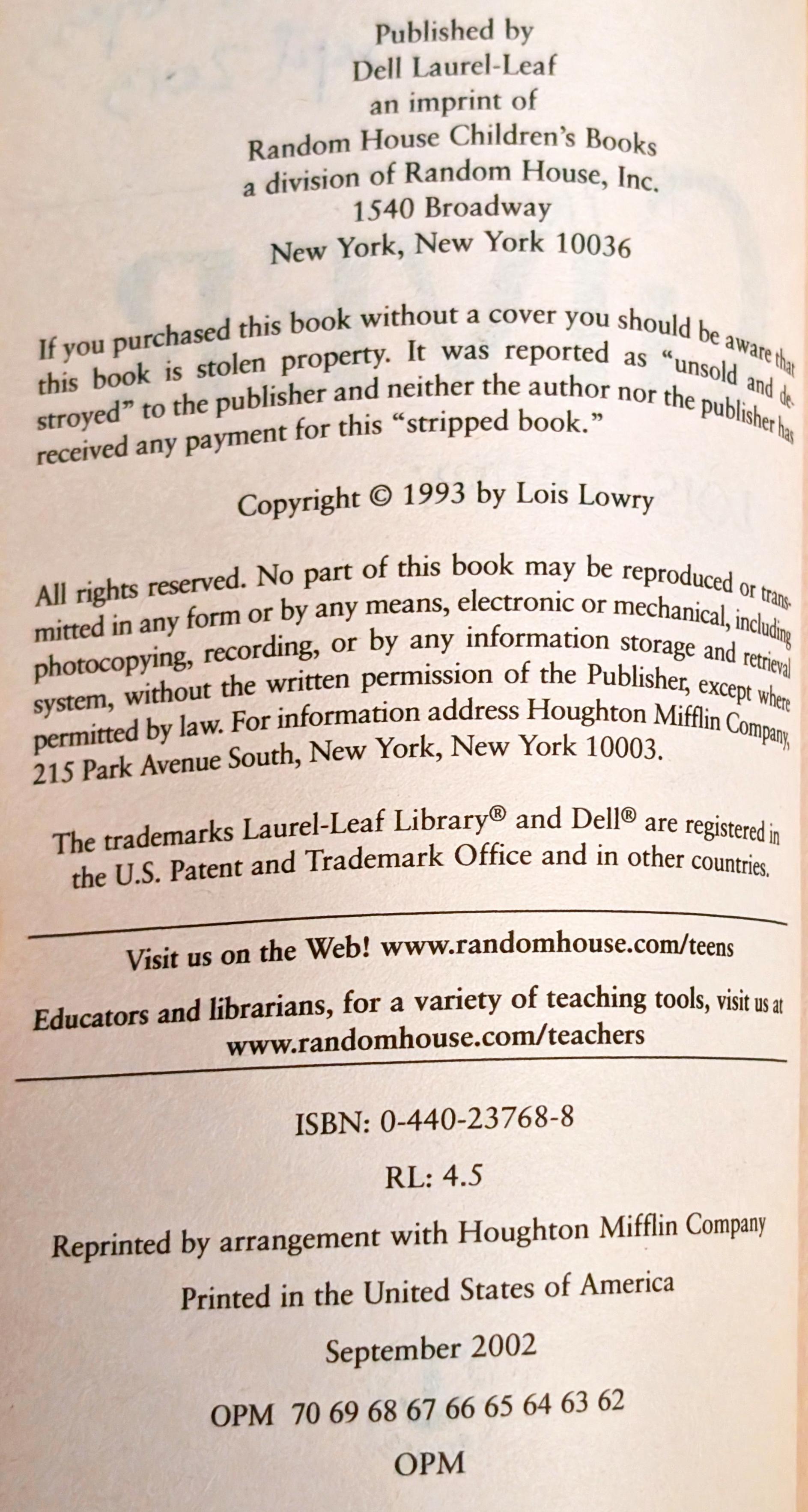 The Giver by Lois Lowry