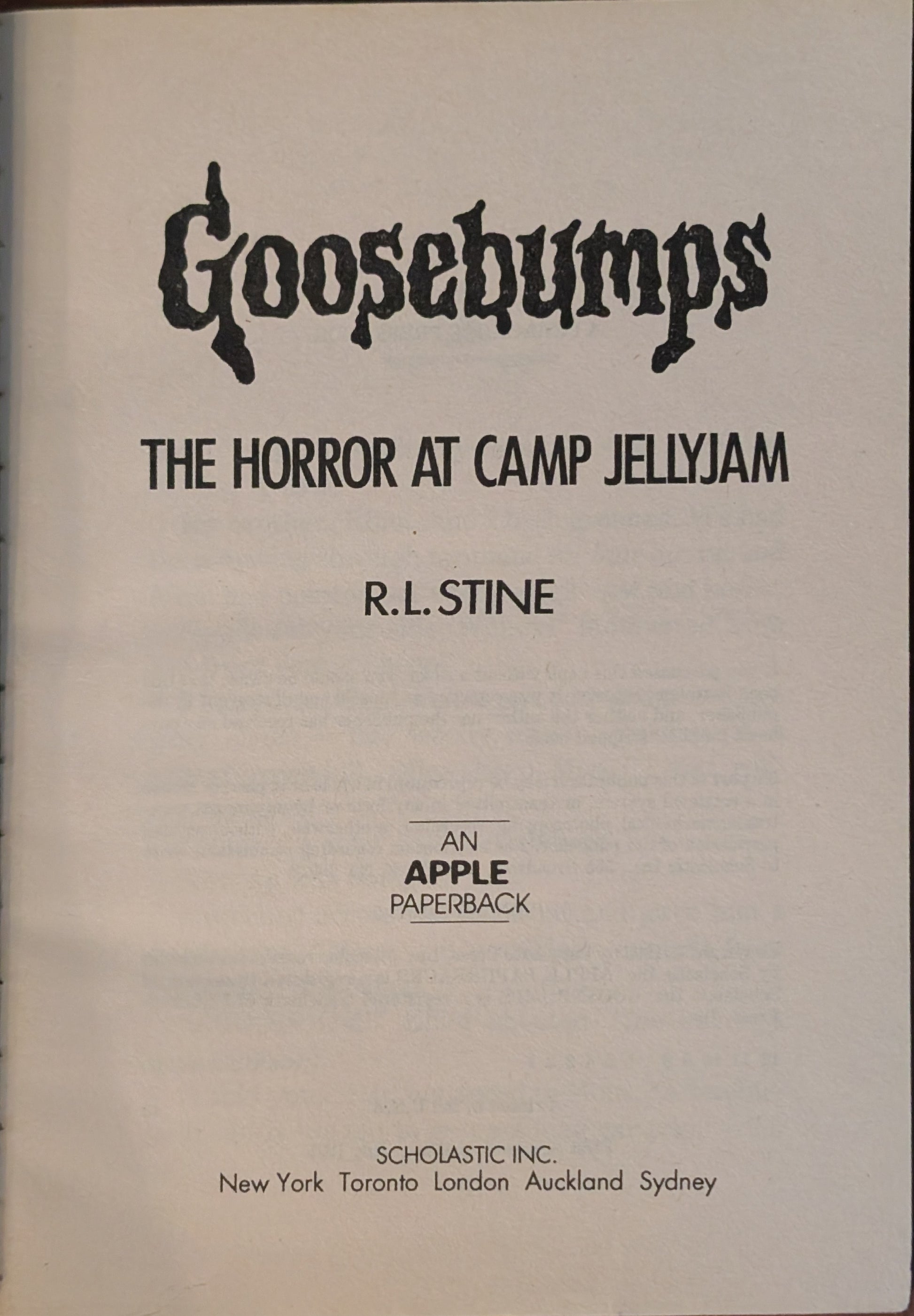 The Horror at Camp Jellyjam (Goosebumps # 33) by R.L Stine